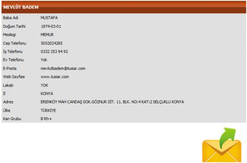 Site ziyaretçimiz sitemize üye olan bir köylümüz ise ve sitemize üye girişi ile giriş yaptıysa aradığı ismin üzerine çift tıklayınca aranılan isme ait iletişim bilgilerini aşağıdaki resimdeki gibi gözlemler.
